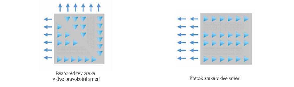 SquAireTex difuzorji so zasnovani tako, da se zrak porazdeli vzdolž stropne konstrukcije v obliki vrtinca v eni ali več specifičnih smereh.